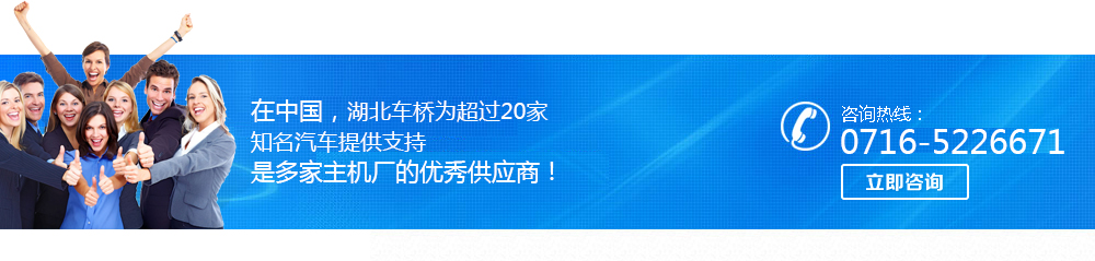湖北車橋與江淮重卡、輕卡、客車、底盤、專用車都是18年來的前后橋總成主供應(yīng)商之一,江淮公司對湖北車橋前后橋總成的新產(chǎn)品開發(fā)周期短、速比齊全、噪音低、交付及時、售后服務(wù)到位給予了高度評價,年供貨量達(dá)到1...